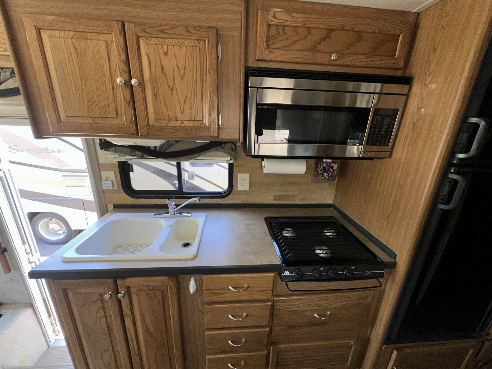 - Full Kitchen – Three-burner stove, oven, microwave, refrigerator, and plenty of storage
